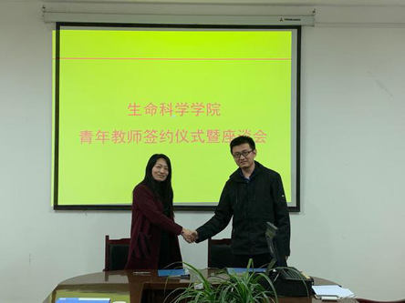 3月29日,生命科学公司在13号教学楼248室举行青年教师签约仪式暨座谈会。公司党总支书记郭万保、副经理(主持工作)庞秋香、副经理巴连良、教学科研办公室主任舒启芳和2017年以来新入职的青年教师参加会议。会议由巴连良主持。