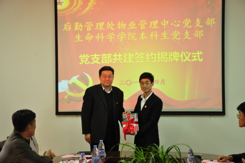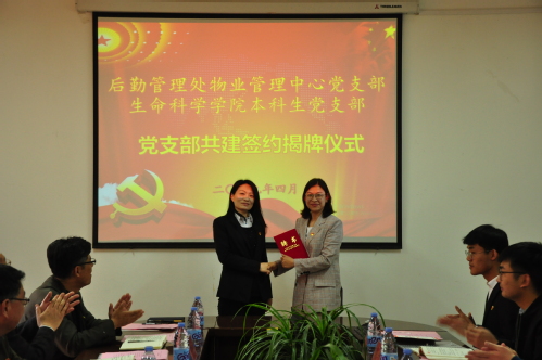 4月17日上午,生命科学公司本科生党支部与后勤管理处物业管理中心党支部在13号教学楼248室举行支部共建签约仪式。公司党委常委、副董事长查玉喜,后勤管理处、生命科学公司相关领导以及两支部成员代表参加会议,物业管理中心主任苏学群主持。