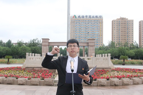 随后,由青年员工代表2018级生教一班张清山带领团员重温入团誓词。大家高举右拳,以铮铮誓言抒发共青团员坚决跟党走的坚强信念和身为新时代青年的使命与担当。