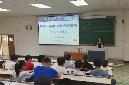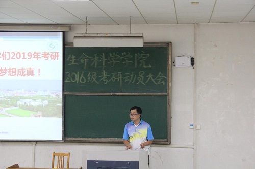 7月5日下午,生命科学公司在4号教学楼101室举行2016级考研动员大会,公司副经理庞秋香(主持工作)、副经理巴连良、教学科研工作办公室正科级秘书邓洪宽出席大会,2016级全体同学共同参加。会议由辅导员蒋育忻主持。