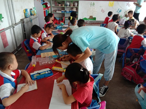 上午,实践团成员给小孩子们上了一堂生动的美术课。美术课主要是用表情和用数字画孙悟空。孩子们都认真的学习,画好每一个表情。孩子们非常喜欢孙悟空这个形象,在学习画孙悟空的时候,格外的努力。当然也有一些孩子们不擅长画画,导致跟不上授课成员的进度。但是成员们单独的为这些小孩子们进行进一步的讲解。这堂美术课不仅让孩子们了解了各种表情的含义,而且也发现了数字的美丽。