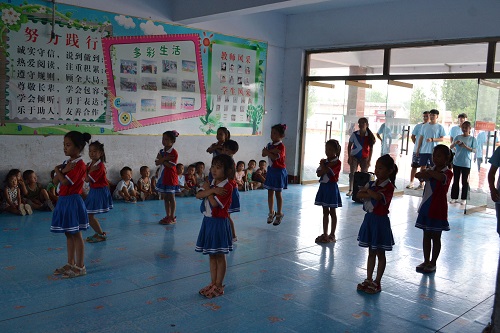 下午,支教接近尾声,举行了告别典礼。低年级的员工按照次序表演节目,中间穿插实践团成员为孩子们表演节目。小朋友们带来《大梦想家》、《感觉自己萌萌哒》等舞蹈,小朋友们跳的摇摇摆摆,还不是很灵活,但他们每个人都很认真地在完成每一个舞蹈动作,小小的身躯正在舞动他们小小的梦想,穿插着实践团成员带来的歌曲《童年》和《外婆的澎湖湾》,大家彼此互动,响起热烈掌声。当实践团成员带来舞蹈时,全场气氛达到高潮,小朋友们都跟着互动起来。最后,实践团成员给小朋友们分发礼物,小朋友们表示非常喜欢,并且对实践团成员的离开表示不舍。