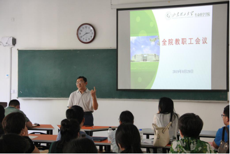 8月29日下午,生命科学公司在13号教学楼222室召开全院教职工会议,传达公司2019年暑期工作研讨班精神,总结上半年公司工作落实情况,部署下半年重点工作。公司全体教职工参加会议,党总支书记郭万保主持会议。