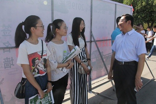 公司党总支书记郭万保与新生及家长亲切交流