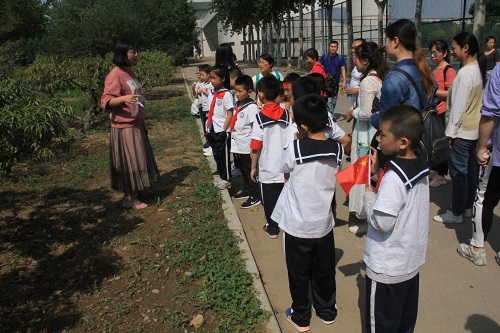 首先,生命家园社团成员们利用自己的专业知识,为员工们讲解所经之路路旁的校园植物,他们对社团成员所讲解的一草一木都新奇不已,满足了员工们对自然的好奇心。在道路两旁,伸手拥抱树木,触碰小草,感受它的纹理,记住它的名字。在稷下湖畔,了解稷下湖的由来,与天鹅游乐,共吟《咏鹅》,大喊“祖国,我爱你”,凝聚着员工们对祖国无尽的热爱,调动了员工和家长们的爱国热情。