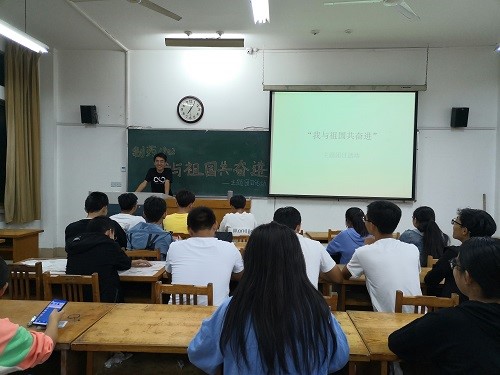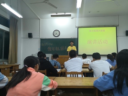 随后,组宣委员唐春组织团支部成员进行“我与祖国共奋进”的演讲活动,同学们都积极参加,表现活跃,充分表现出每个成员心中对祖国美好愿望以及对青春的大胆展望。
