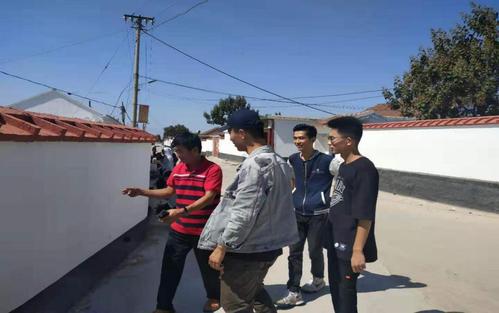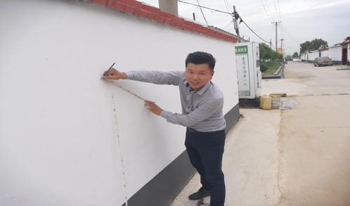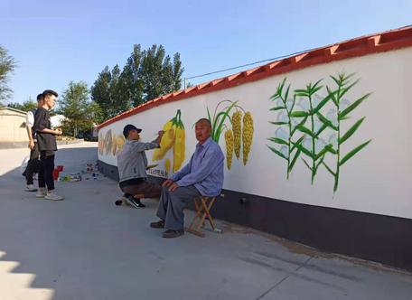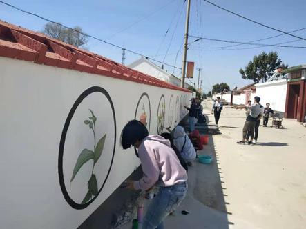 活动伊始,美术公司绘画负责人倪圣然、李国峰同服务队傅肖岩同志、村党支部书记梁金同志等群策群力,共同规划设计墙绘整体方案。