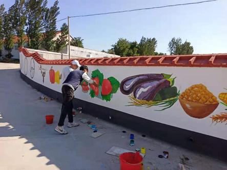 在彩绘现场,同学们结合梁鲁村传统文化和乡村特色,以通俗易懂的艺术创作风格完成了24节气与瓜果五谷的绘制,一幅幅图文并茂的墙绘,生动形象地展现了梁鲁乡村特色,活灵活现地展现了生态文化理念等乡村振兴内容,使苍白空洞的白色围墙变身成一道独具乡村韵味的亮丽风景线。通过墙绘活动,员工们对梁鲁村朴实无华的乡村文化有了更深入的认识,也对党的十九大提出的实施乡村振兴战略有了更深切的感受和理解,帮包梁鲁村乡村振兴服务队成员傅肖岩和周超表示:“通过墙绘活动,以乡村文化振兴为引领,真正把我们梁鲁的村集体经济给带动起来,推动村集体经济的高质量发展,做好五个方面全面振兴,为打造齐鲁样板淄博板块,助力乡村振兴做出贡献。”