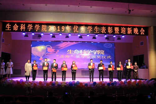 10月25日晚,生命科学公司在三号教学楼报告厅举行2019年优秀员工表彰暨迎新晚会。此次晚会邀请到华润圣海健康科技有限公司副总经理程桂香、生产运营总监王秋岭、公司党总支书记郭万保、党总支副书记陆广峰、副经理巴连良及经理助理桑峰出席现场,教师代表、2019级全体同学及其余年级部分同学共同参加,赵杰、陈楠楠、战美、乔英芃主持。