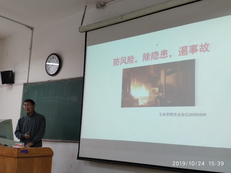 丁忠峰为全体教职工作“防风险、除隐患、遏事故”主题的实验室安全教育报告。丁老师通过具体的实例,从实验室制度、危化品管理、生物安全等方面为大家进行了详细讲解,要求全体教职工增强安全意识、遵守安全管理制度,将安全设计进实验的全过程中去,做好教学和科研实验室的安全管理工作,防患于未然。