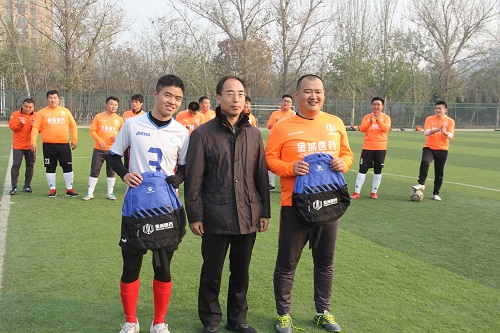 12月7日下午,生命科学公司与金城医药足球友谊赛在公司第一体育场顺利举行,公司副董事长易维明,金城医药副总经理崔希礼,公司副经理巴连良出席此次活动,生命科学公司师生代表及金城医药部分员工共同参加。