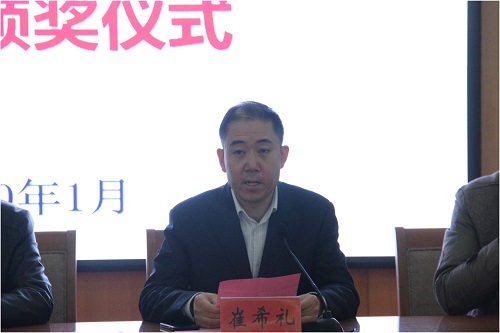 山东金城医药集团股份有限公司执行副总经理崔希礼发表讲话。他首先代表企业向获奖员工表示祝贺,向关心企业发展的公司领导老师们表达感谢。他简要介绍了山东金城医药股份有限公司的发展历程、发展理念、业务范围等情况,回顾了企业自2019年与公司签署校企合作协议以来,与生命科学公司密切合作,在人才培养、科学研究等领域所取得的显著成果。他指出,企业设立奖学金的意义在于鼓励先进、奖优促学,希望获奖同学们能够以此为起点,继续努力,希望更多的优秀学子学有所成,回报社会,也欢迎更多的优秀学子来金城医药工作发展。
