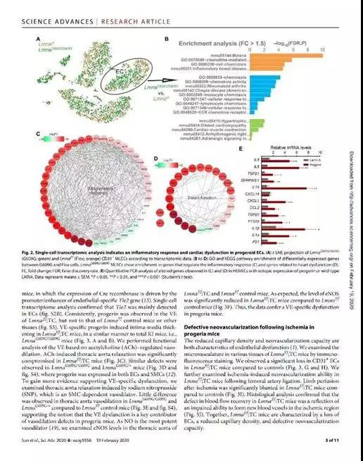 2020年2月 20日生命科学公司发育与免疫研究团队和抗衰老与再生医学研究所在国际著名综合性杂志Science子刊《Science advances》(影响因子:12.157, 1区Top)在线发表题为《Vascular endothelium-targeted Sirt7 gene therapy rejuvenates blood vessels and extends lifespan in a Hutchinson-Gilford progeria model》的研究性论文,同时该论文内容被选为本期滚动播放四个工作之一。