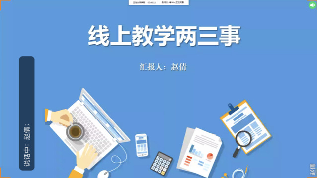 会上,首先就本学期前8周线上教学情况,邀请赵倩、秦洁两位老师作了 “线上教学经验分享”。