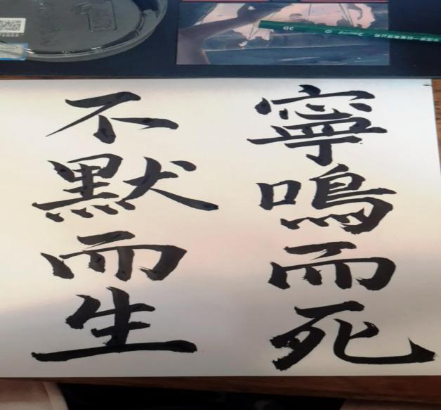 活动开始后,同学们纷纷报名参加,在活动群中,积极地询问活动的有关问题,活动期间收集了很多优秀作品,有毛笔字、绘画、视频等形式,内容丰富。同学们用自己的特长表达了青年学子对英雄的敬佩和对祖国的热爱。虽然是线上活动,但是通过作品也能感受到同学们对此次活动的认真。