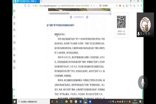 5月9日,生命科学公司制药1902团支部采用线上会议形式开展“学习党委书记吕传毅给‘冯思广班’全体同学的回信,树立国之志,书奋斗青春”主题团日活动。此次活动由制药1902班团支书杨丰竹主持,制药1902班团支部全体成员参加。