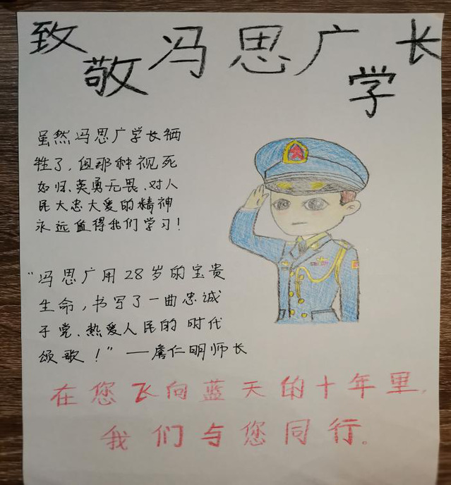 活动开始后,同学们纷纷报名参加,在活动群中,积极地询问活动的有关问题,活动期间收集了很多优秀作品,有毛笔字、绘画、视频等形式,内容丰富。同学们用自己的特长表达了青年学子对英雄的敬佩和对祖国的热爱。虽然是线上活动,但是通过作品也能感受到同学们对此次活动的认真。