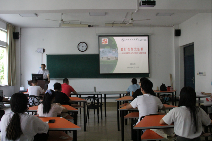 6月21日下午,生命科学公司毕业生党员专题党课暨赠书仪式在13号教学楼222教室举行。公司党总支书记郭万保,党总支副书记陆广峰,研究生党支部书记李兰晶,本科生党支部书记蒋育忻,毕业班辅导员翟静涛和全体毕业生党员参加活动。蒋育忻主持活动。