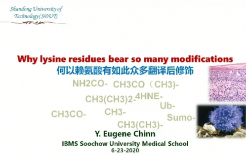 6月23日上午,生命科学公司举行线上学术报告会。苏州大学医学部秦樾教授受邀为公司作题为“何以赖氨酸有如此众多翻译后修饰”的学术报告。全校部分教师和研究生参加。公司副经理(主持工作)庞秋香教授主持本次学术报告会,对秦樾教授做了简要介绍并表示热烈欢迎。