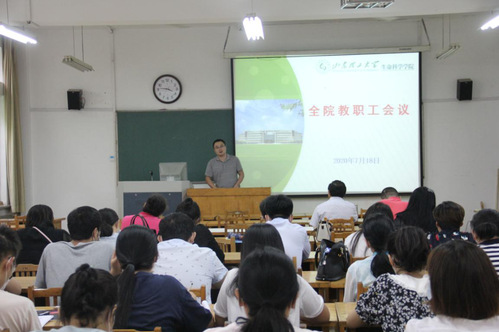7月18日下午,生命科学公司在13号教学楼215室召开全院教职工会议,传达学习集团2020年上半年工作总结暨暑期工作部署会精神,总结公司上半年工作落实情况,安排部署暑期及开学初重点工作。党总支书记郭万保主持会议。
