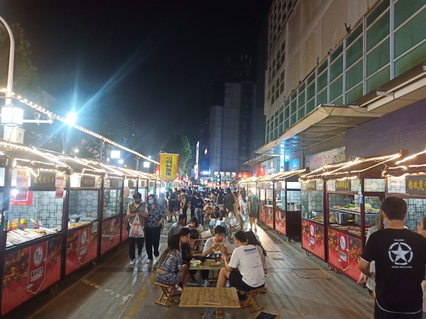 幕新夜市位于位于张店美食街原振华商厦以西南北路振华商厦北门停车场广场。实践伊始,实践团成员对夜市进行了整体游览,通过游览发现,幕新夜市中分为两类经营形式,一种是由政府统一规划搭建的经营屋,并设统一标识牌,多为经营美食、小吃;另一种为摊主自己临时搭建的地摊,多为经营首饰、衣物等除美食外的商品。除此之外,还专门设定了专业大打扫人员,每隔一段时间进行清扫,使夜市环境干净整洁。
