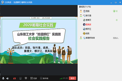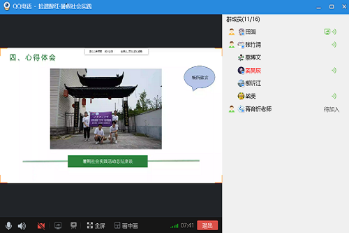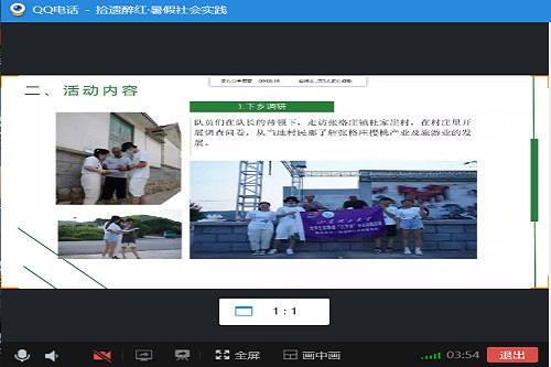7月31日,谈球吧网页版登录入口拾遗醉红实践团召开了线上社会实践总结报告会。此次会议由团队负责人田园主持,实践团全体成员参加。