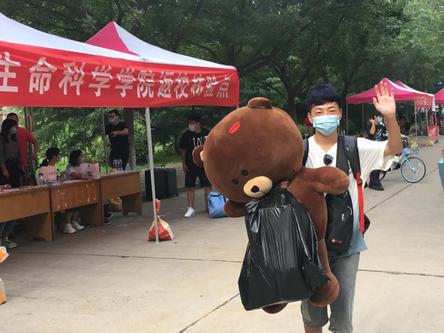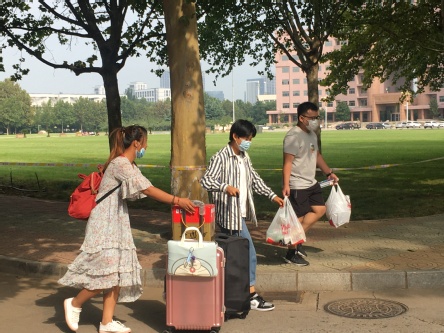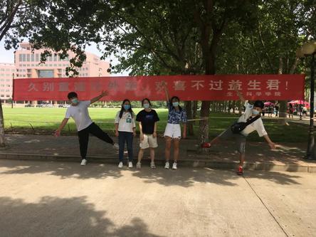 在工作人员的指引下,大家按照地标站好,依次通过迎接点手部消毒、身份核验,看到熟悉的老师与同学,大家挥手致意,满脸更是堆满了幸福的笑容,有的甚至相拥打闹,搞怪打卡,现场充溢着欢声笑语。