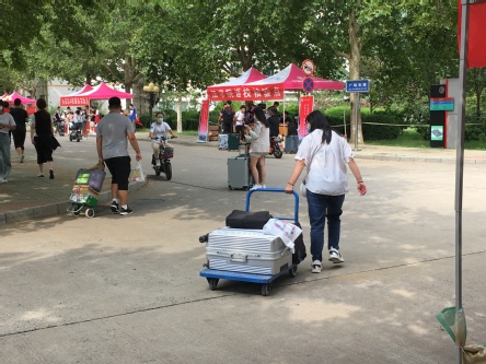 此外,现场为了便于员工行李搬运,公司专门给配备了爱心拖车,公司员工会、员工党员、返校同学更是自发组成志愿服务队伍,主动在校门及公司迎接点帮同学搬运行李。