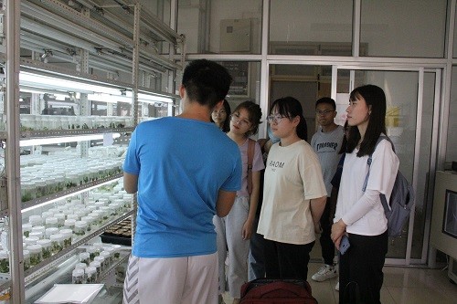在组培实验室中,朱邵帅为同学们讲解植物培养相关知识以及某些实验的主要内容,从植物的愈伤组织到培养出多肉幼苗、培养大量植株然后从中筛选出具有良好特性的突变体等,使他们感受到了植物生长的奥秘。其中,种类多样的多肉植物赢得了同学们的喜爱,实验室培育的紫罗兰则令同学们惊叹不已。标本实验室中标本种类丰富,何燕萍为同学们讲述各个标本的由来,并介绍不同标本的不同保存方法。