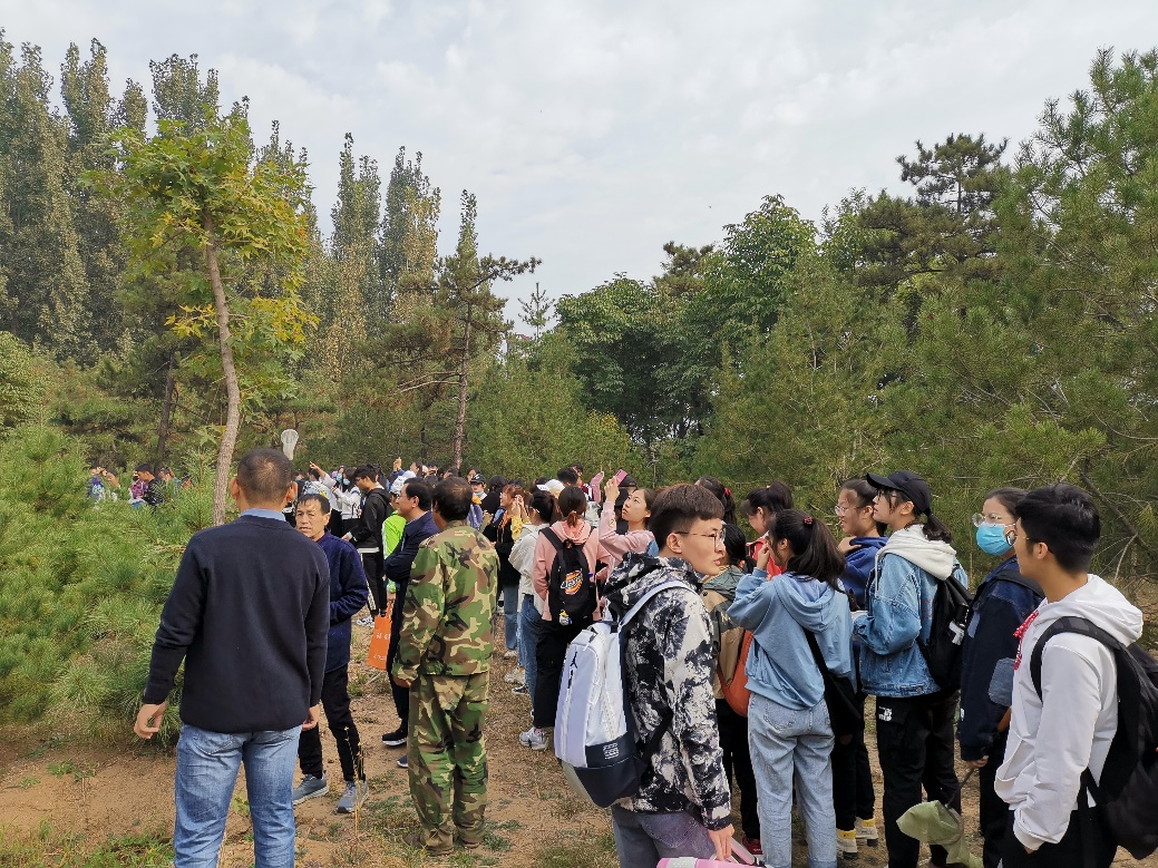 野外实习团队首先来到了下小峰村苗木园参观园林苗木。同学们在老师的带领讲解下学习生物知识,动手采集物种标本。