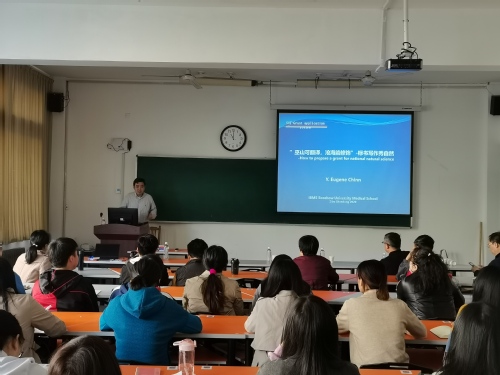 秦樾教授报告的题目是《巫山可翻译,沧海能修饰-标书写作秀自然》。秦教授从背景介绍、前期基础、理论分析、假说提出、技术与方法、研究目标及重要性等方面介绍了项目写作的经验、技巧及注意事项,一个个形象的案例给与会人员留下极其深刻的印象。与会师生与两位教授进行了深入探讨与交流,两位教授对师生的提问进行了耐心和专业的解答,并对相关后续研究进行了展望。