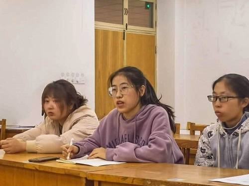 随后,李洪艳就20级新生晚自习情况向19级学委征求意见和建议。20级生教学委徐润奇希望晚自习可以在投影仪上播放实验预习报告PPT,以便于同学们共同学习商讨。李洪艳认为晚自习播放PPT设想可以实施,但需要先与老师和学习部成员商议制定完整计划。最后,19级学委总结班级各项事务,并热情地向20级新生分享有关学习和生活上的经验。