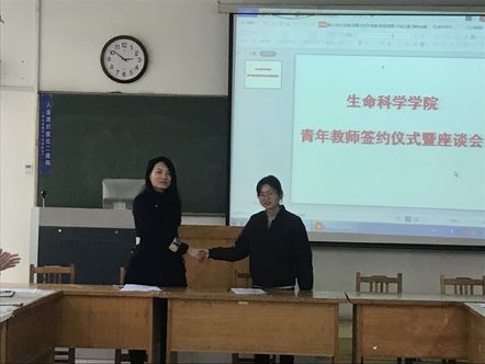 接着分别由青年指导教师代表赵凤云、青年教师代表曹忠红发言,两位分别简单介绍了一下生命科学公司的发展史,希望大家把生命科学公司当作第二个家,具有集体荣誉感,并从备课、科研及第二课堂分别给大家进行了指导,希望大家既来之则安之,主动参与到教学活动中,适应新的环境和身份的转变。
