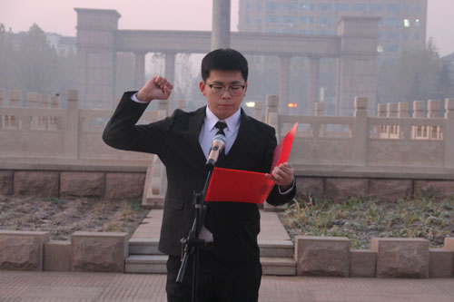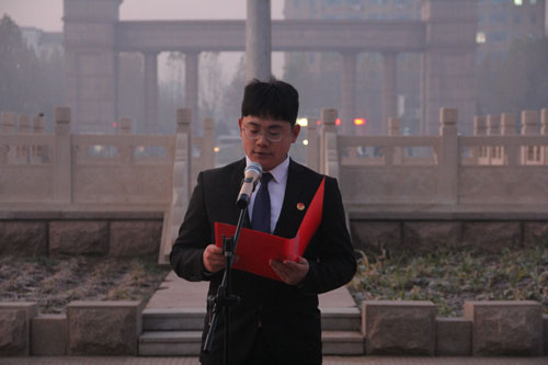 公司员工会执行主席于肖童做国旗下主题演讲。他以“实现中国梦,青春勇担当”为主题,号召全院学子与时代同行,自觉增强社会责任、培养创新精神、掌握专门知识、提高实践能力、锤炼健康身心、牢记青年使命,争做新时代“五有”人才,投身民族伟大复兴中国梦的筑梦、圆梦奋进中。