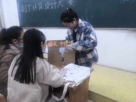 因疫情还尚未完全解除,活动宣传阶段主要集中于线上宣传。本活动在2020年10月6日进行线上报名。参赛者利用日常生活中的闲置物品,如快递盒、塑料瓶、纸张等通过裁剪、绘画等各种手工制作方法,对其进行改造加工或重新制作,积极发挥同学们的创造性思维,弘扬社会主义核心价值观,培养爱国精神和民族精神,形成欢庆国庆或喜迎中秋鲜明主题的成品。