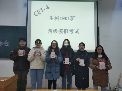会议最后,田园对于即将到来的期末考试为全班同学鼓劲,并为四级模拟考试一二三等奖进行颁奖表彰。