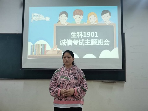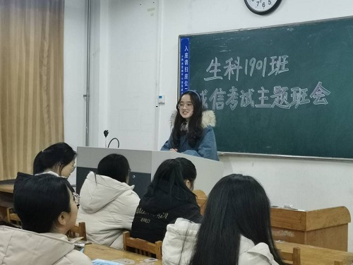 12月25日晚生命科学公司生科1901班于13教201举行诚信考试主题班会,班级导师袁佐清和生科1901班全体成员参加,班长田园主持。