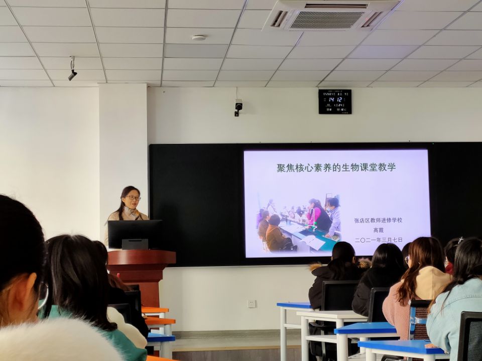 3月7日,高霞老师以《聚焦核心素养的生物课堂教学》为题,为同学们介绍了当前中员工物公司产品的现状和基本要求。同时,用一堂生动的课堂实录让同学们更加直观的了解了当下中员工物课堂的教学过程。此外,还向同学们介绍了中员工物教学的备课和上课的流程和要求。