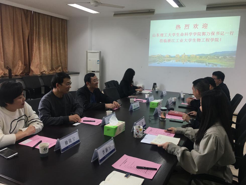 在浙江理工大学(下沙校区),公司一行受到该校生命科学与医药公司党委书记、副经理丁春平等热情欢迎,该院员工工作办公室主任杨勐、本科教学实验中心主任程霞英、教工党支部书记张晓丹参加交流。