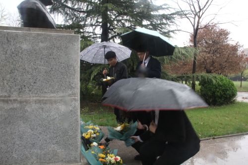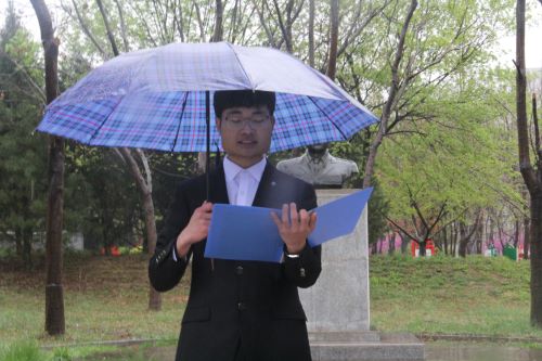 上午9时许,伴着淅沥小雨和阵阵寒风,公司师生代表在冯思广烈士雕像前集合完毕,随着主持人动情的活动介绍,缅怀活动正式开始。