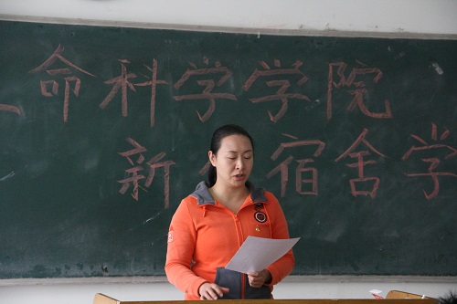 随后,全体辅导员为优秀新生宿舍学长颁发荣誉证书。陈颖洁宣读新聘新生宿舍学长名单。