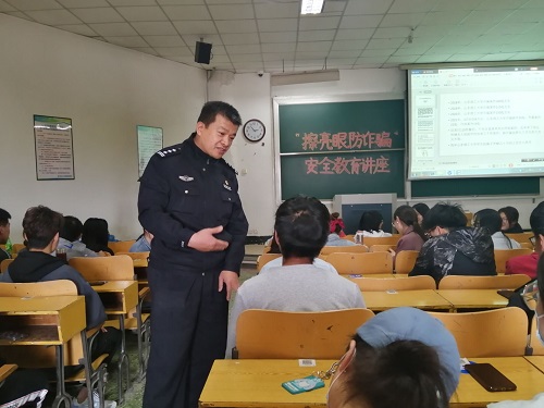 4月29日下午,生命科学公司在3号教学楼401教室举行“擦亮眼,防诈骗”安全教育讲座,公司全体宿舍长以及各班班长和团支书参加,学区派出所警察张健主讲。