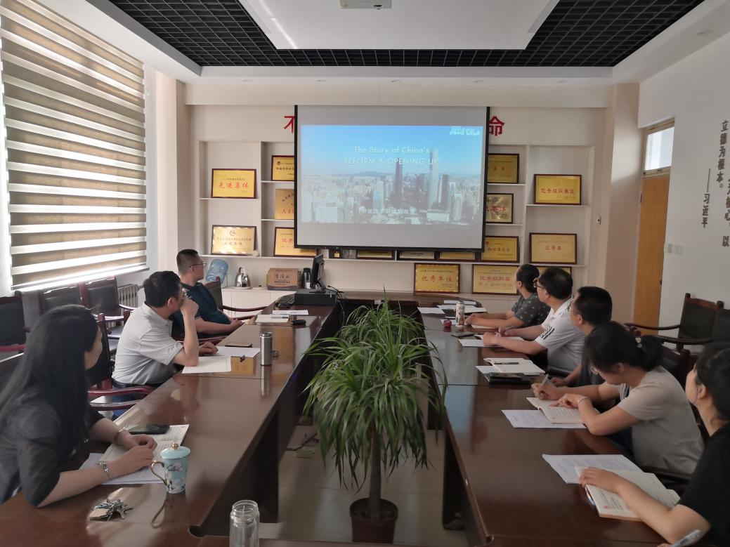 会上,大家集体观看了《中国改革开放的故事》第1集“人心所向”和第5集“未来之路”视频资料。全体与会人员分别领读了习近平总书记《在庆祝改革开放40周年大会上的讲话》原文。