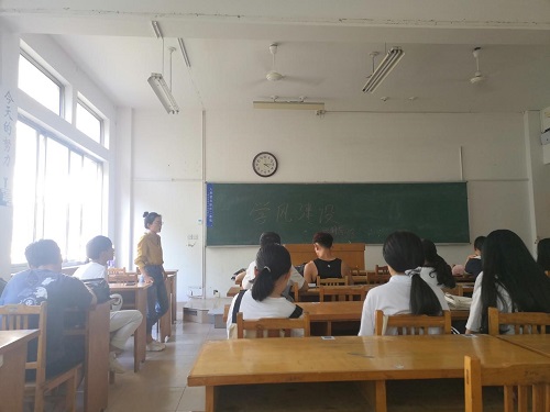 会议伊始,班长徐泽臻就大家上课玩手机问题,课堂氛围及班级同学对以后面临的问题进行一一说明,鼓励大家加入实验室及参加各种创新创业大赛培养自身兴趣。随后班导张启丽说道,学习氛围并不是一个人担任事情,而是一个班级整体的体现,希望班委可以起到带头作用,互帮互助,让班级更加优秀。