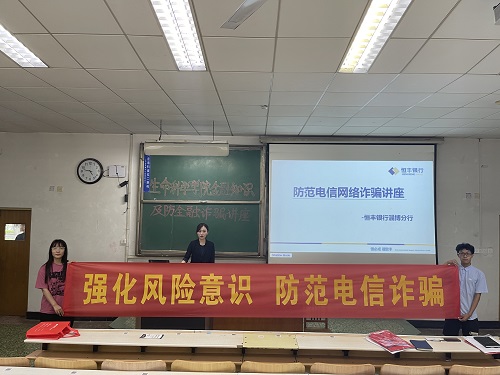 6月17日下午,生命科学公司于四号教学楼104室举办金融知识及防诈骗讲座。此次讲座由公司19、20级全体宿舍长、院辅导员陈颖洁及恒丰银行各工作人员参加,辅导员蒋育忻主持。