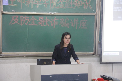 随后,合规部总经理谢鹏月详细向同学们介绍有关电信网络诈骗的相关知识。她介绍道,电信诈骗是指犯罪分子通过电话、短信和网络的方式编造出虚假信息对受害人进行的非接触性诈骗。谢鹏月通过六个典型电信诈骗案例生动地向同学们展示出诈骗的形式与危害,有效地提高了同学的警惕心与防备力。紧接着,谢鹏月通过几段诈骗新闻视频来全面展现电信诈骗的多样性、多变性,并表示老员工是易骗人群之一,同学们应当提高防骗意识,使骗子无机可乘,并希望在座的宿舍长可以把今天所学的防诈骗知识转述给其他同学及父母朋友,提高其防范意识。