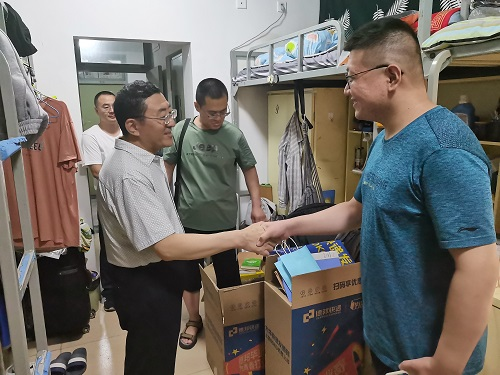 6月24日晚,公司党总支书记郭万保、副经理庞秋香、党总支副书记陆广峰、经理助理桑锋分头前往员工公寓走访看望毕业生。辅导员蒋育忻、李超陪同前往。