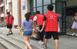6月25日清早,身穿红色马甲的志愿服务队伍早已分头在各公寓楼下集结完毕,在认真清点小推车等搬运工具后,志愿者整装待发投入到一天的志愿服务活动中。为更好地帮助毕业生完成行李物品搬运等动作,志愿者们分工有序,轮流值守。或在楼下行李安置处看护行李,或深入毕业生宿舍协助收拾清理。一时间,志愿者身影充斥在公寓行人中,在搬抬行李间为毕业季的校园留下了一抹动人的志愿红。