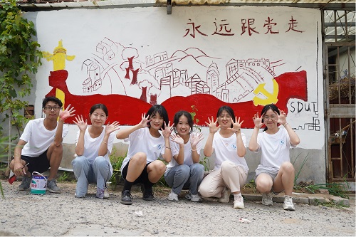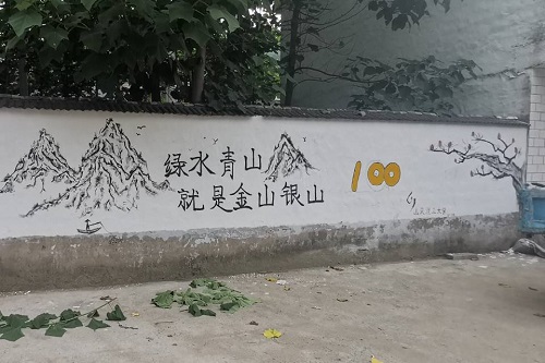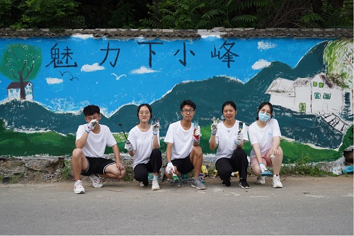 为打造美丽乡村,推进省级美丽乡村建设项目,“七月蜜‘峰’”实践团成员为下小峰村十二面白墙进行墙绘创作。成员们从下小峰特色“绿色资源”和“红色精神”两方面入手,精心构思、细心雕磨,小心翼翼地用粉刷勾勒出一个个动人形象,每一幅画都是一个故事,每一幅画都饱含实践团成员们的心血和期望。