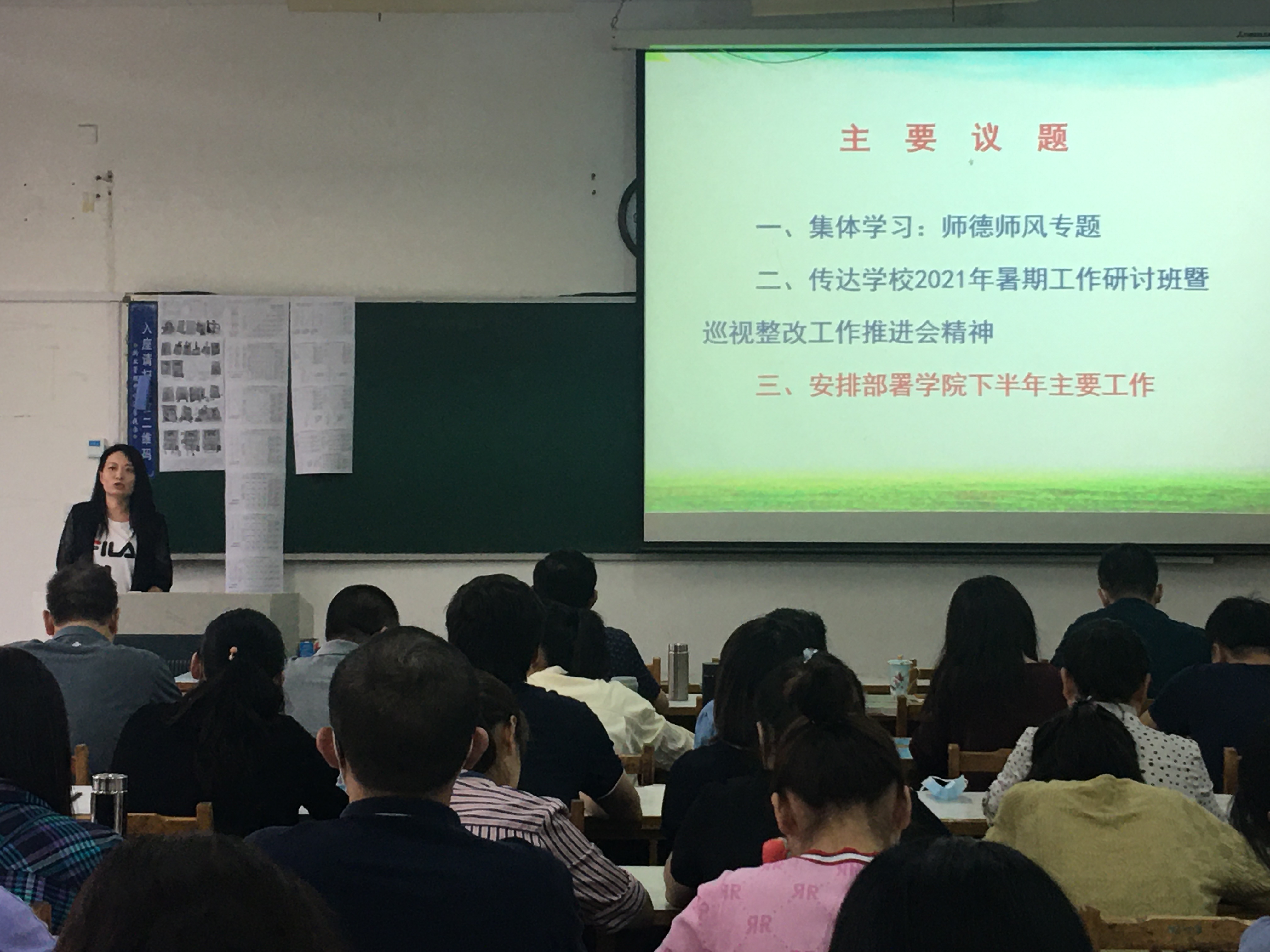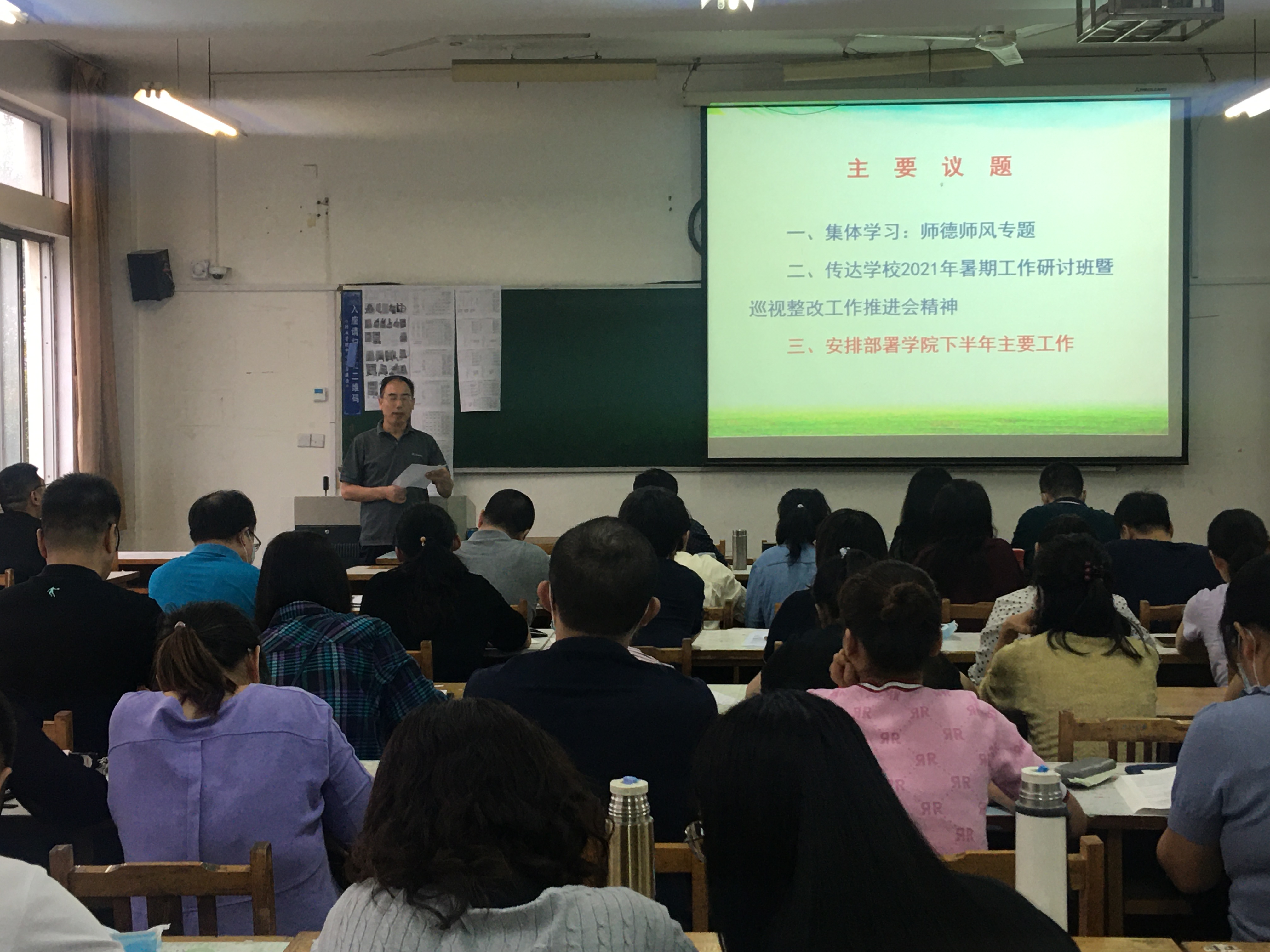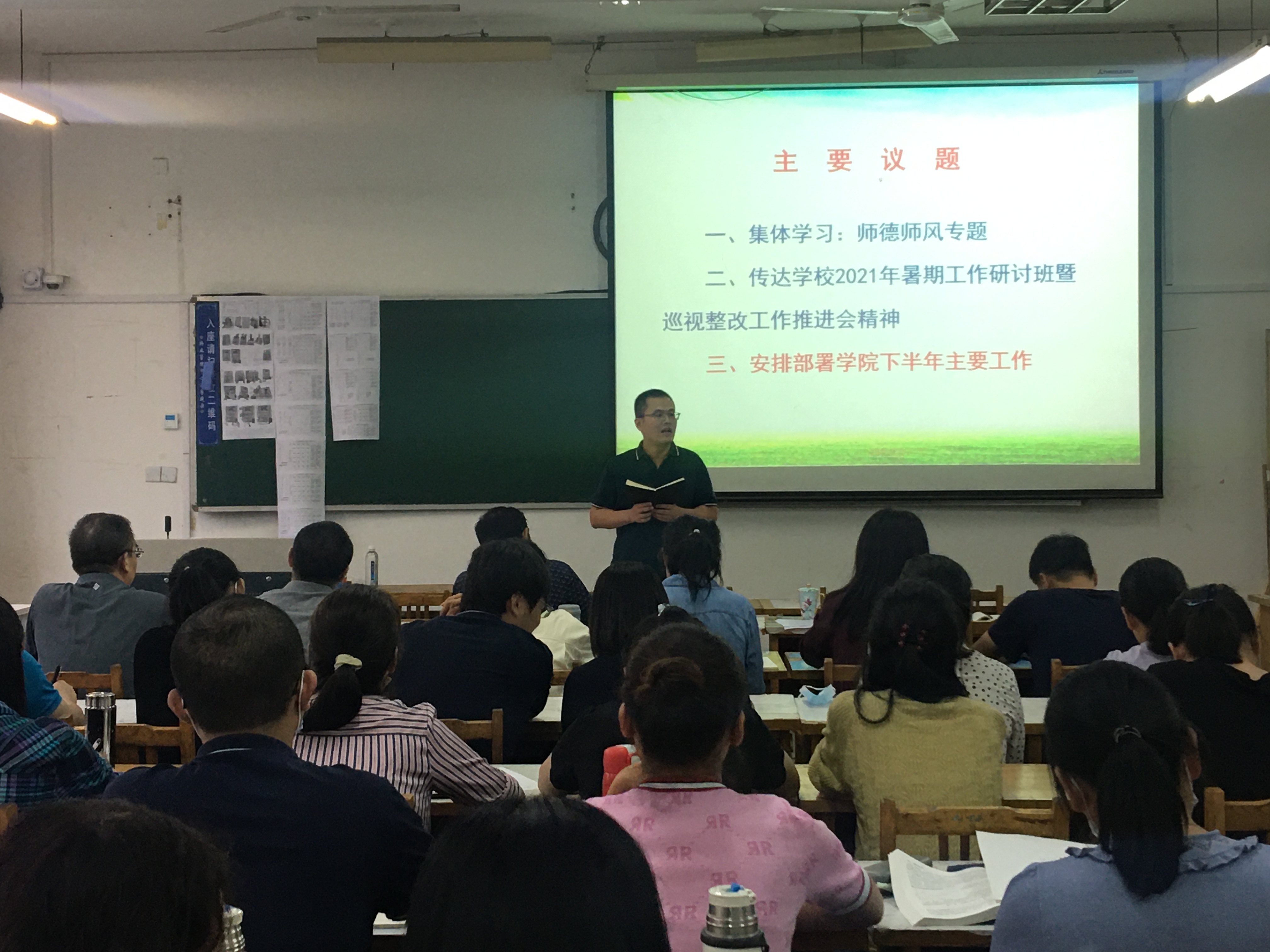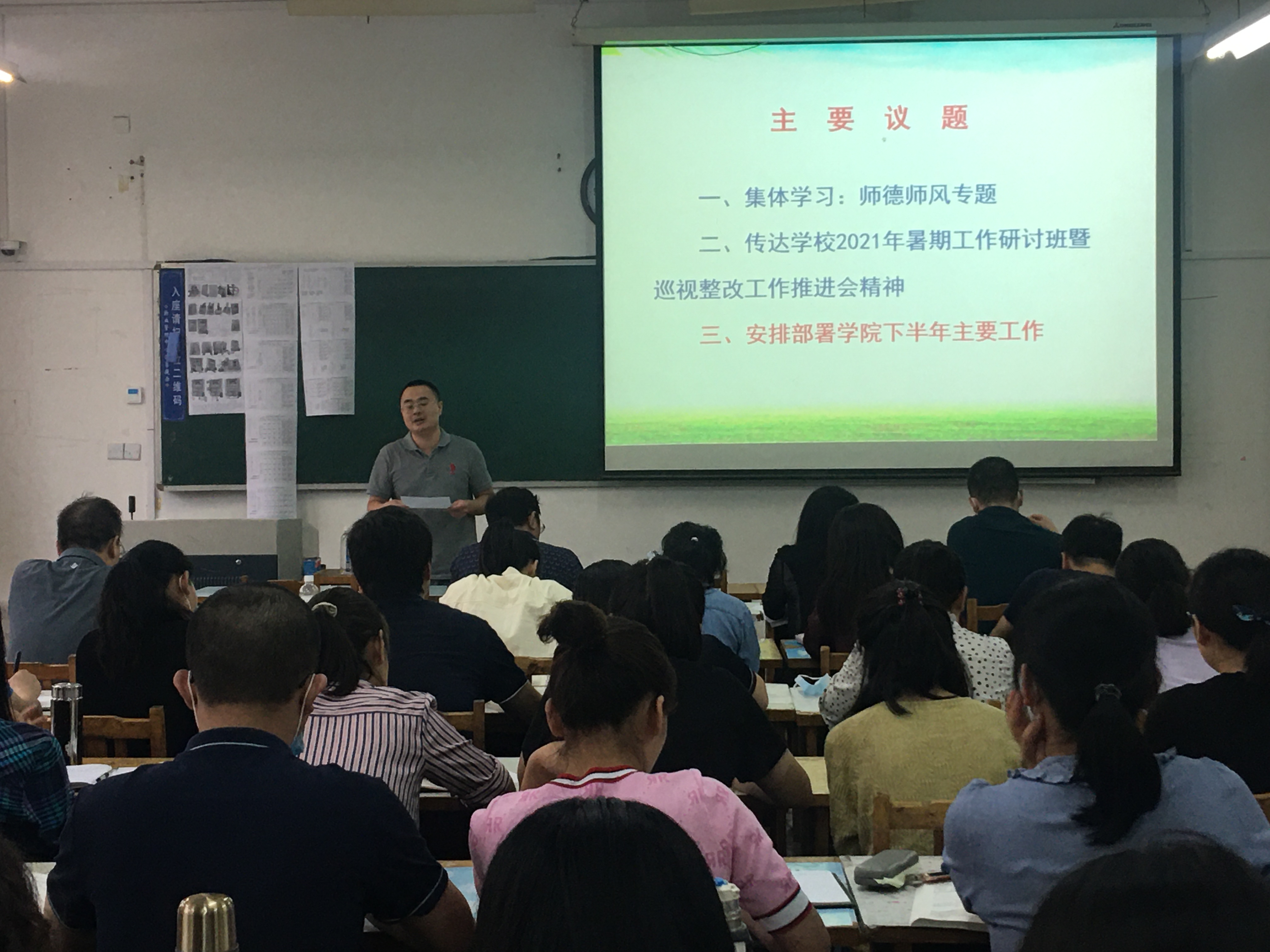 8月31日下午,谈球吧在13号教学楼203室召开全体教职工会议,传达公司2021年暑期工作研讨会暨巡视整改工作推进会精神,总结暑期相关工作开展情况,安排部署下半年公司主要工作。党总支书记郭万保主持会议。
